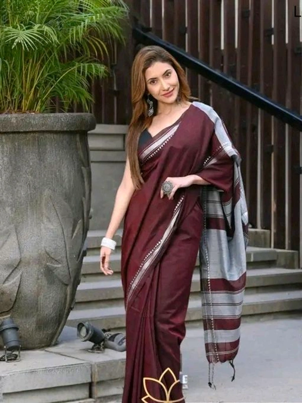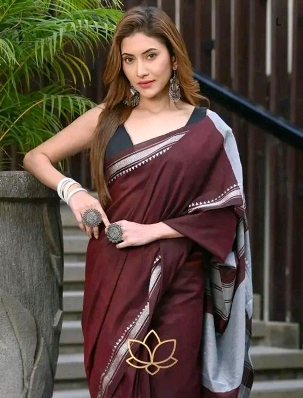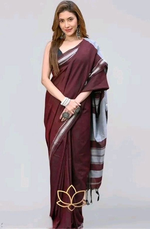 Pure cotton silver jari border with running blouse pic(same sa body) for women
